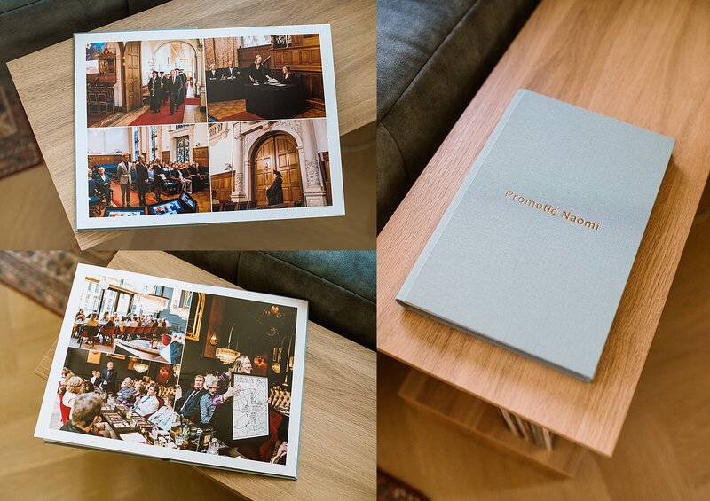 Ik kom 30 minuten voordat de promotie begint. Zo kan ik de voorbereidingen en de momenten in het zweetkamertje vastleggen. De verdediging zelf mag ik geen foto's maken. Maar tijdens het begin en bij het ontvangen van de bul wel. Na het promoveren kan ik nog een aantal groepsfoto's op de trap maken.